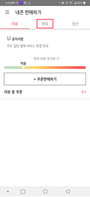 판매금이 어떻게 되었는지 알기 위해서는 완료를 눌러줍니다.