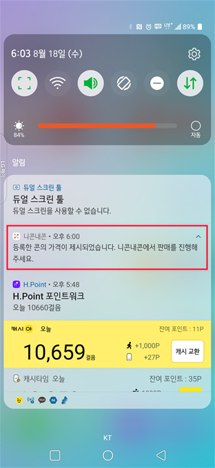 (오른쪽 사진) 출금이 완료되면 리뷰 완료와 마찬가지로 알림으로 알려줍니다.