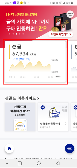 (왼쪽 사진) 메인화면에서 상품을 눌러줍니다. 금이든 은이든 플래티넘이든 상관없습니다.