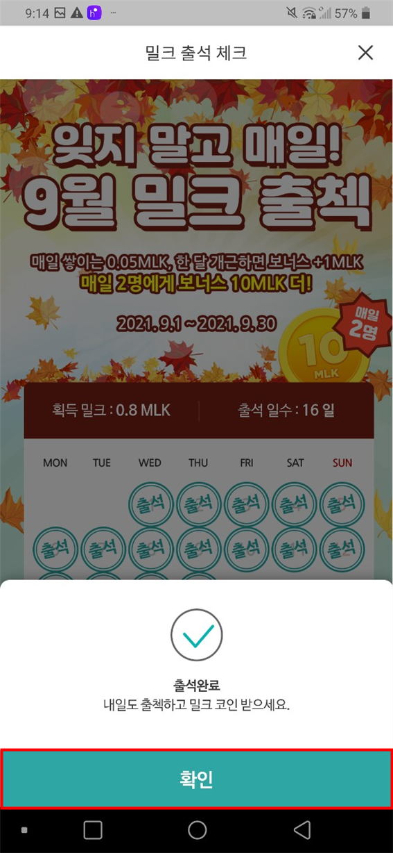 출석체크를 통해서 밀크코인을 얻을 수 있 수 있습니다.