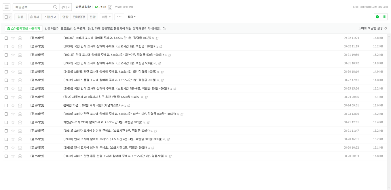 저는 조사 대상이 아니라서 50원밖에 받지 못했군요.
