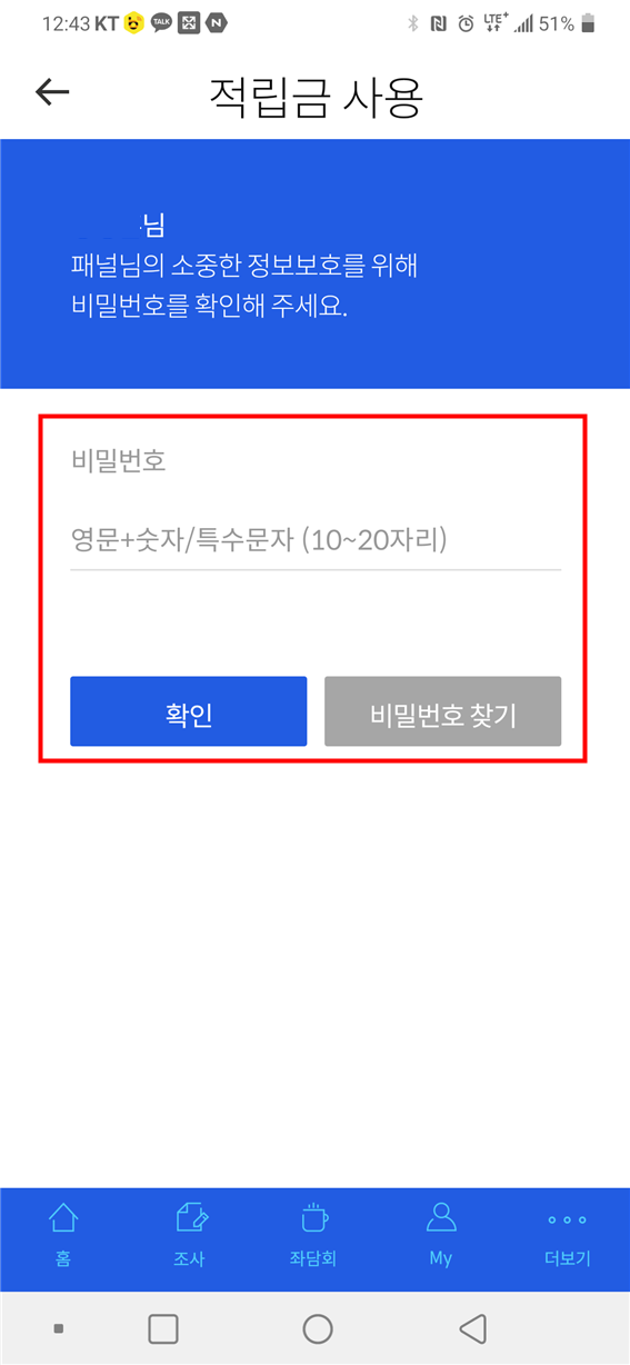 (왼쪽 사진) 적립금 사용은 매우 중요한 문제라서 비밀번호를 한 번 더 물어보네요