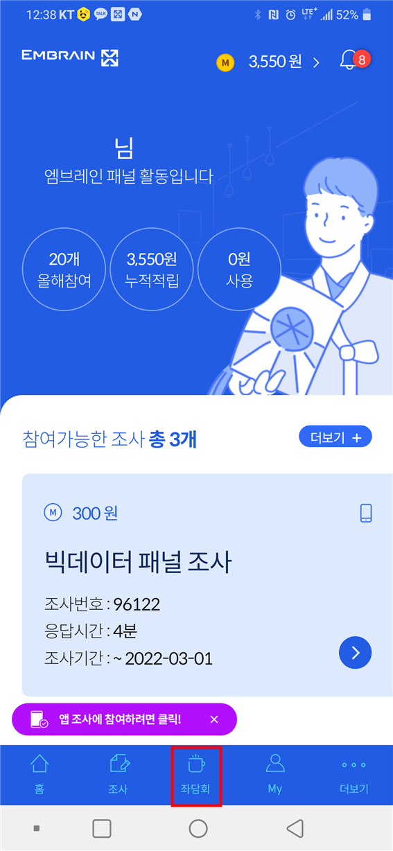 해당 앱은 설문조사와 좌담회를 통해서 수익을 얻을 수 있는 앱입니다.