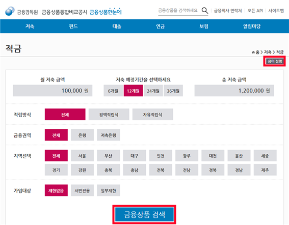 이런 어려움을 덜어주기 위한 곳이 있습니다. 바로 금융감독원의 금융상품한눈에 라는 것이죠.