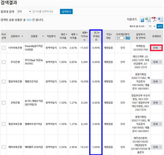 최고 우대금리로 정리된 화면은 숫자가 큰 것이 훨씬 더 보기가 좋네요.