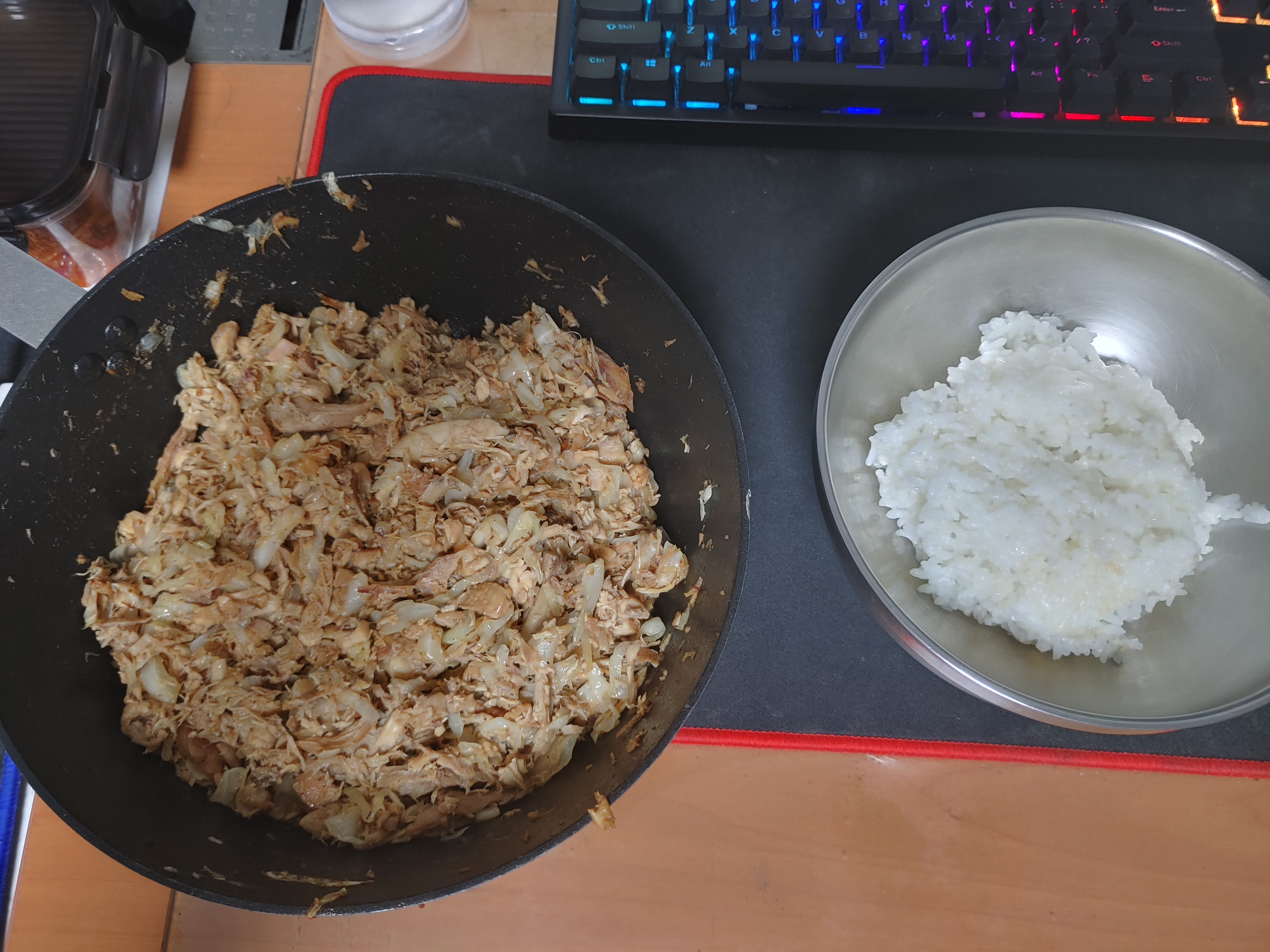사온 로티세리 치킨 그 자체를 즐기기 위한 부분은 따로 떼서 먹고(다리라든가, 날개라든가)