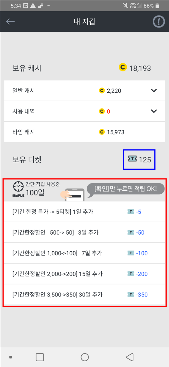 단, 간편 적립을 위해서는 티켓을 모아놔야 하는데 30일에 350티켓이고