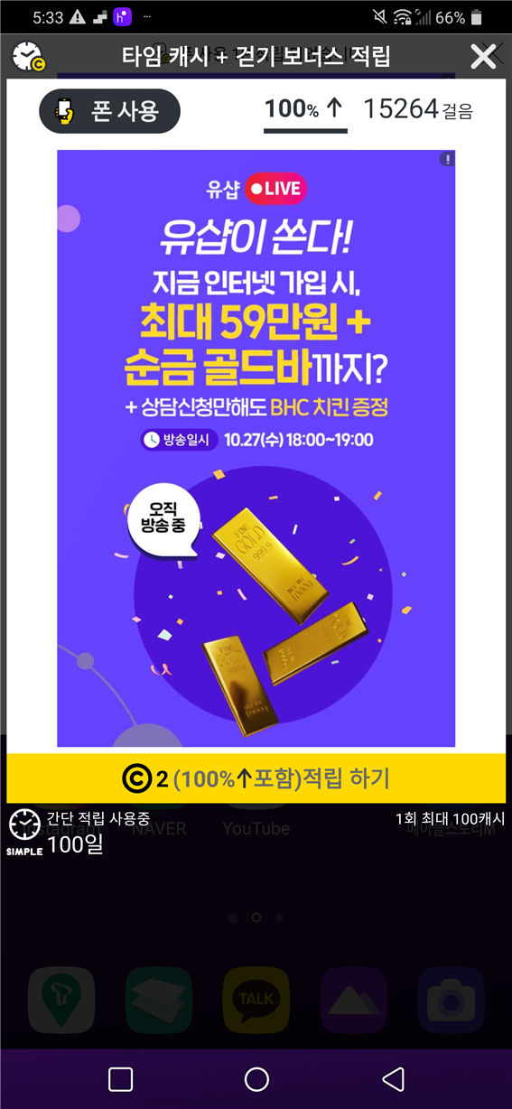 핸드폰을 꺼놔도 적립이 되고 그 어떤 앱을 사용을 해도 적립이 되니까요.