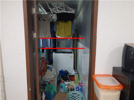 베란다에 쌓여 있는 물건들을 가져가야할때 숙여야 하는 높이를 급격하게 낮춥니다.