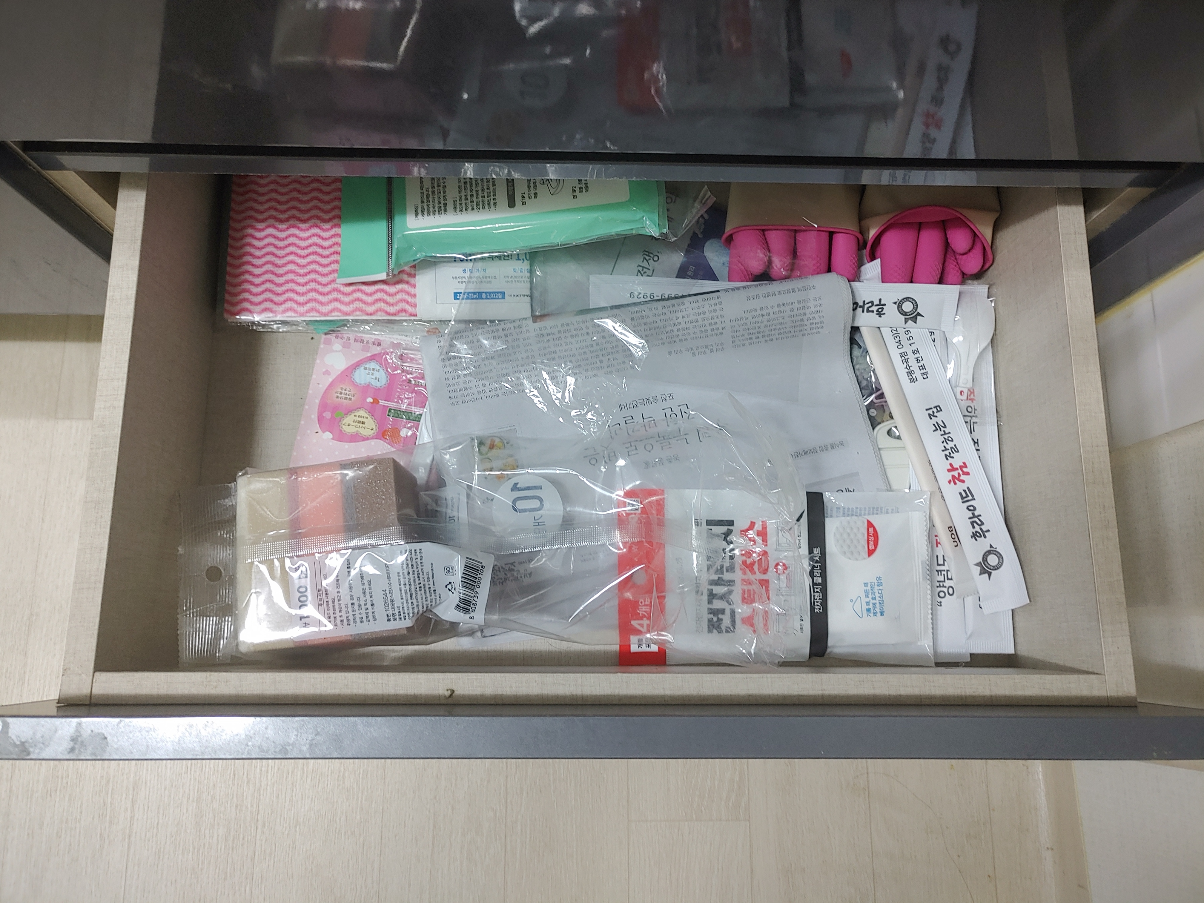 우선 서랍 안에 있는 물건들을 모두 빼내줍니다.