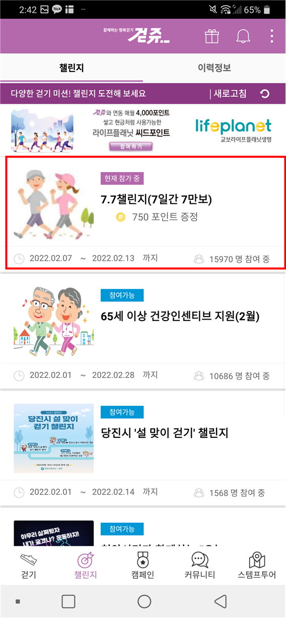 (오른쪽 사진) 리워드를 얻을 수 있는 7.7 챌린지가 있습니다.