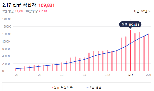 일일 확진자가 1만명을 돌파한지 한 달도 지나지 않아 10만명을 돌파하였습니다.