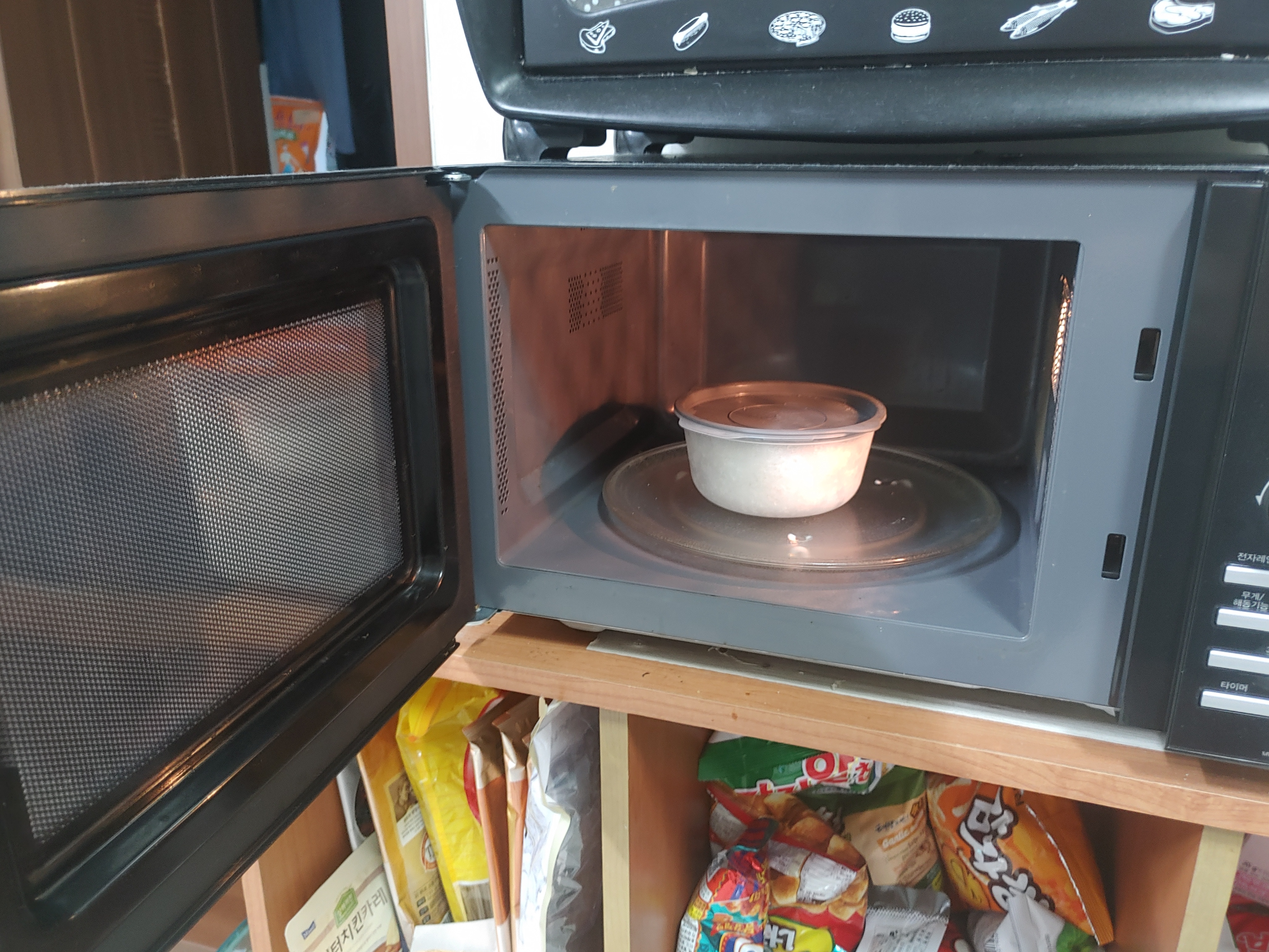 냉동밥을 먹을 시기가 온다면 이제 전자레인지에 넣고 돌리면 됩니다.