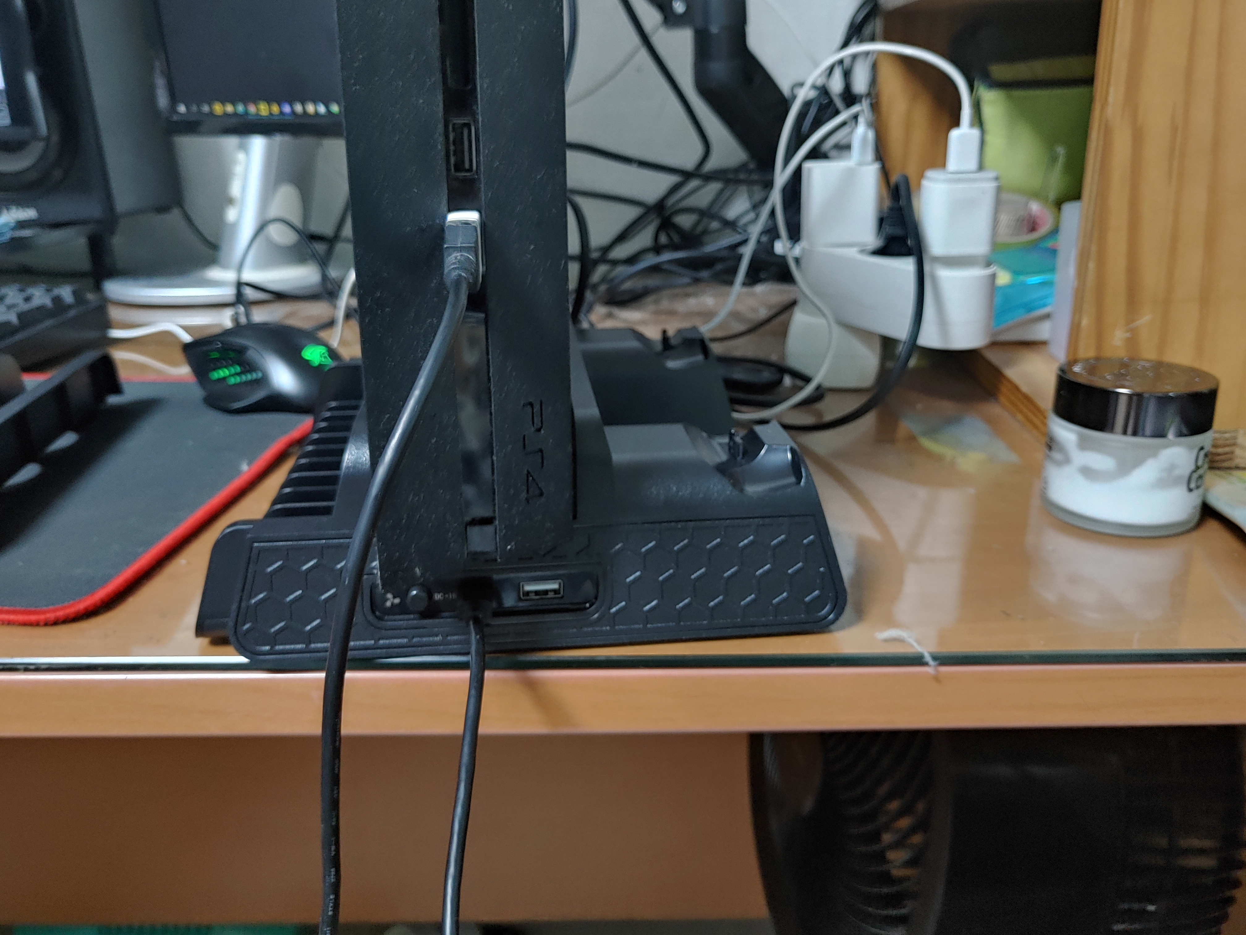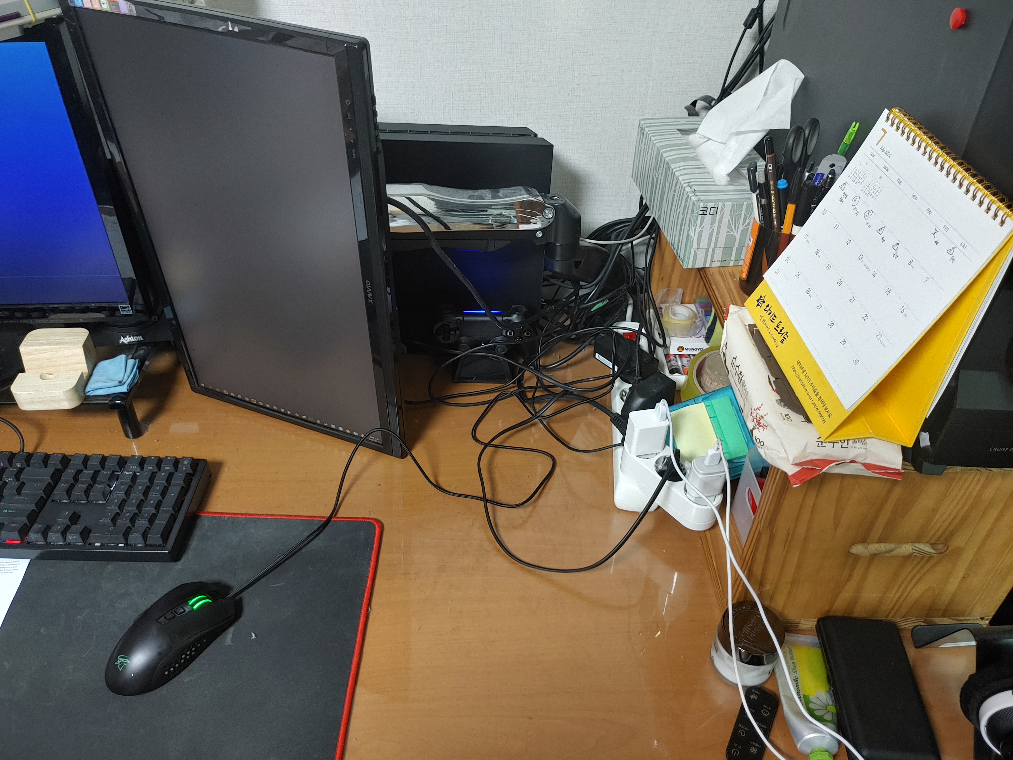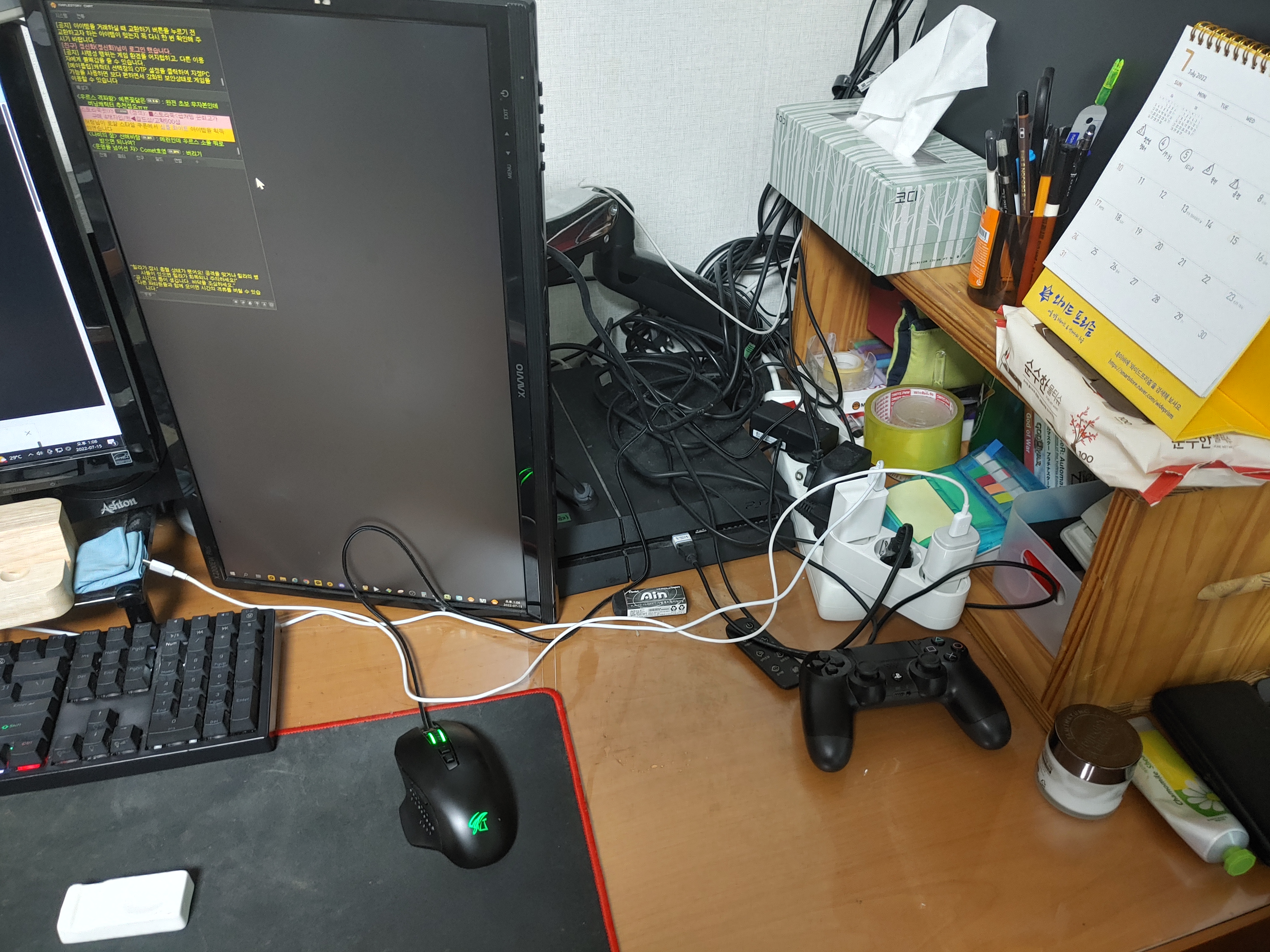 정리하기를 포기한 전선 다발들 아래로 PS4가 외로이 누워있습니다.