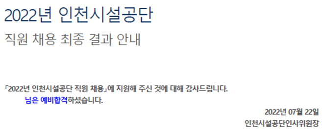 | 인천시설공단 면접 준비 및 후기 (feat. 1분 자기소개) (3) | 2022.07.13 |