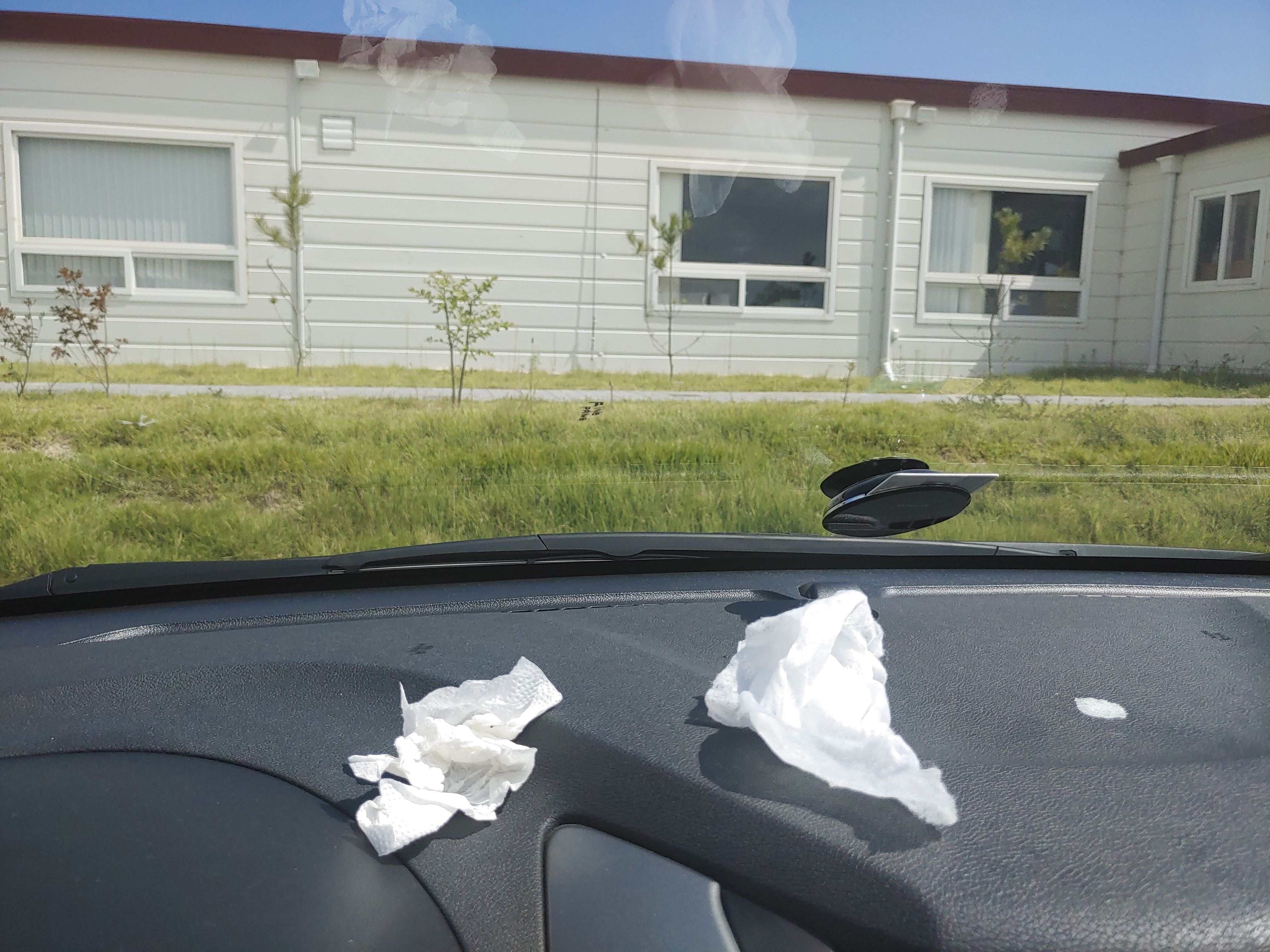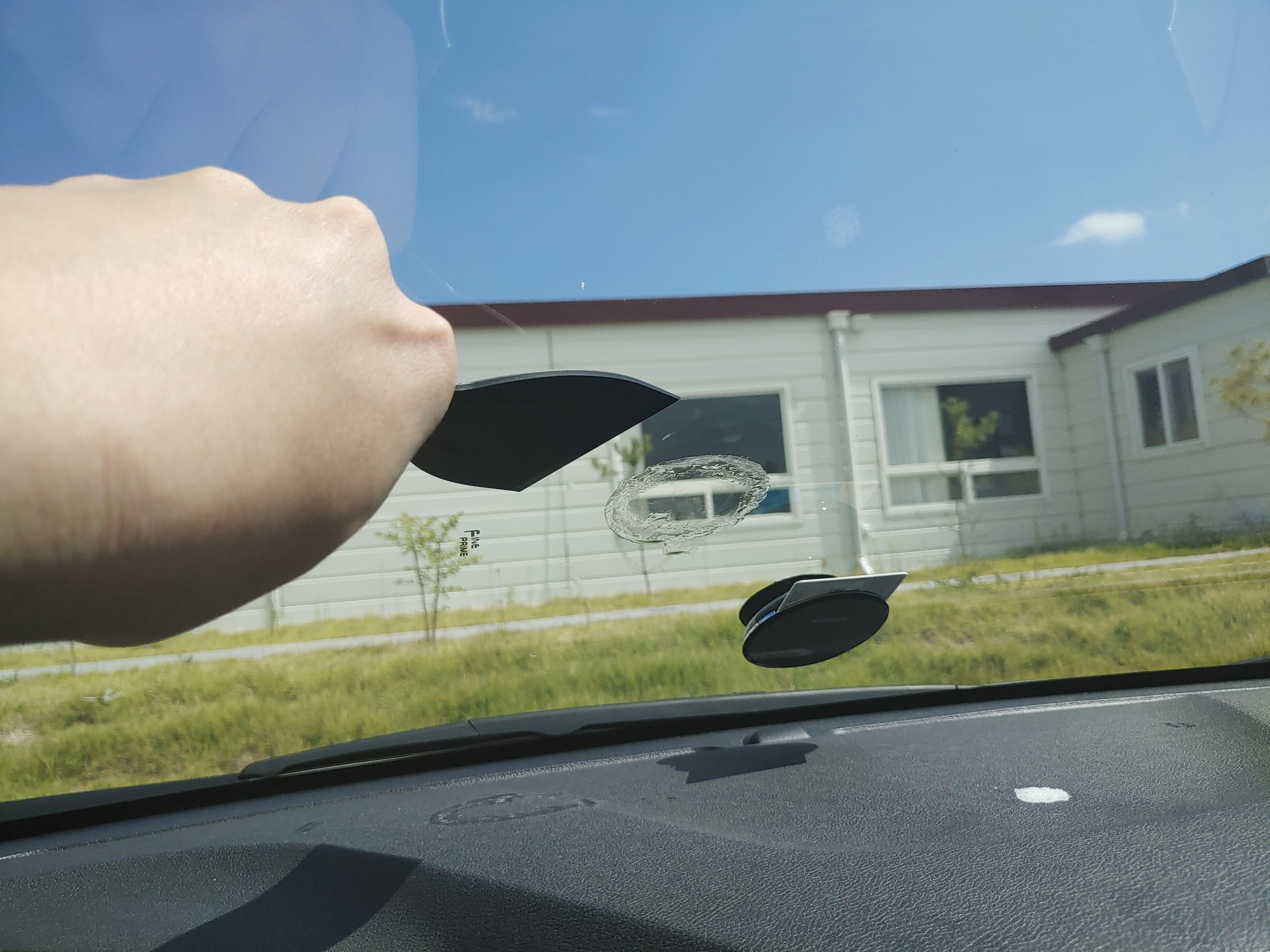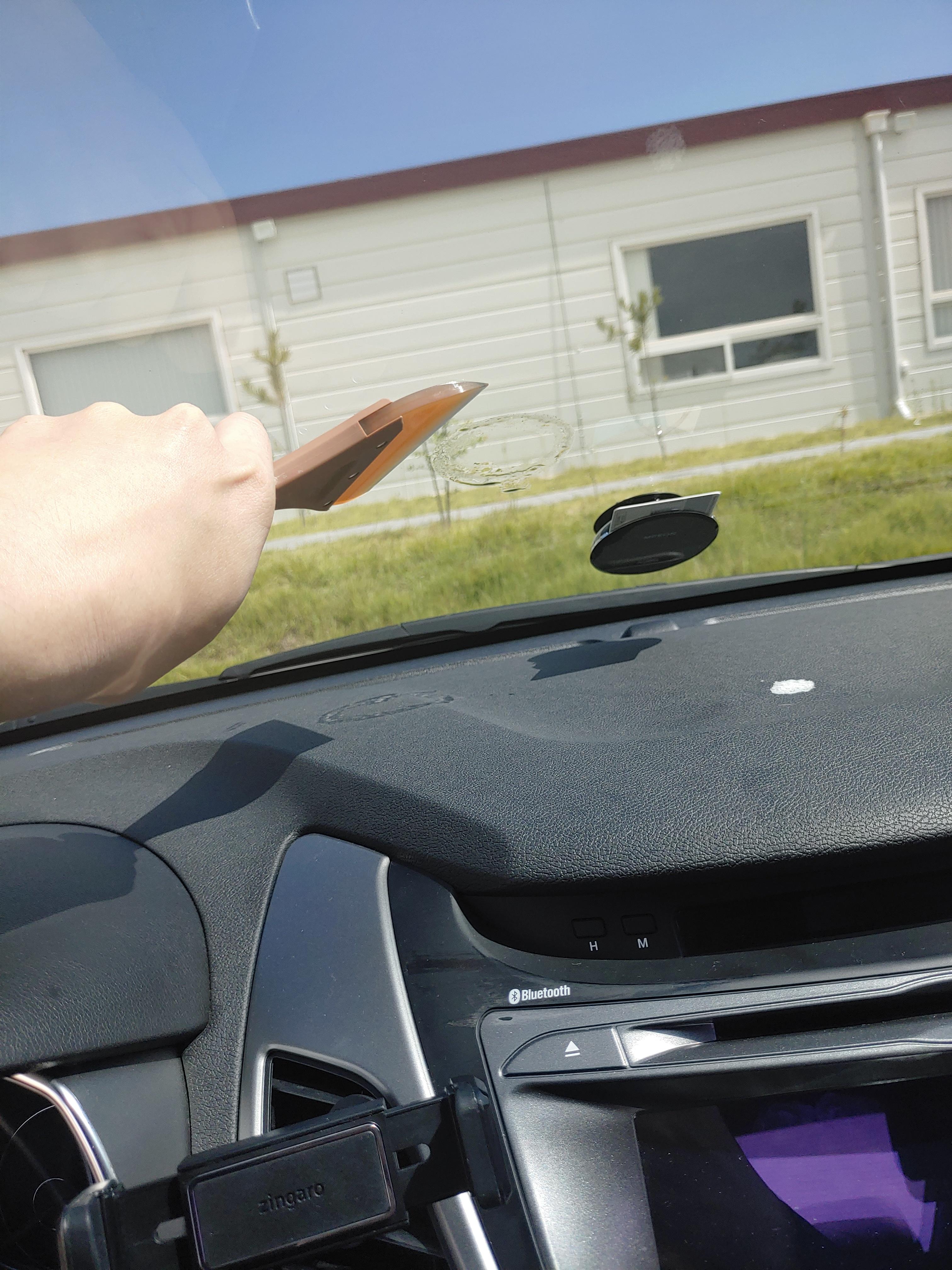 날이 더워서 그런가 앞유리에 대자마자 붙어버려서 밀리질 않았습니다.