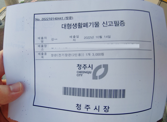 품목을 확인한 뒤 폐기물 스티커를 발급받아야 합니다.