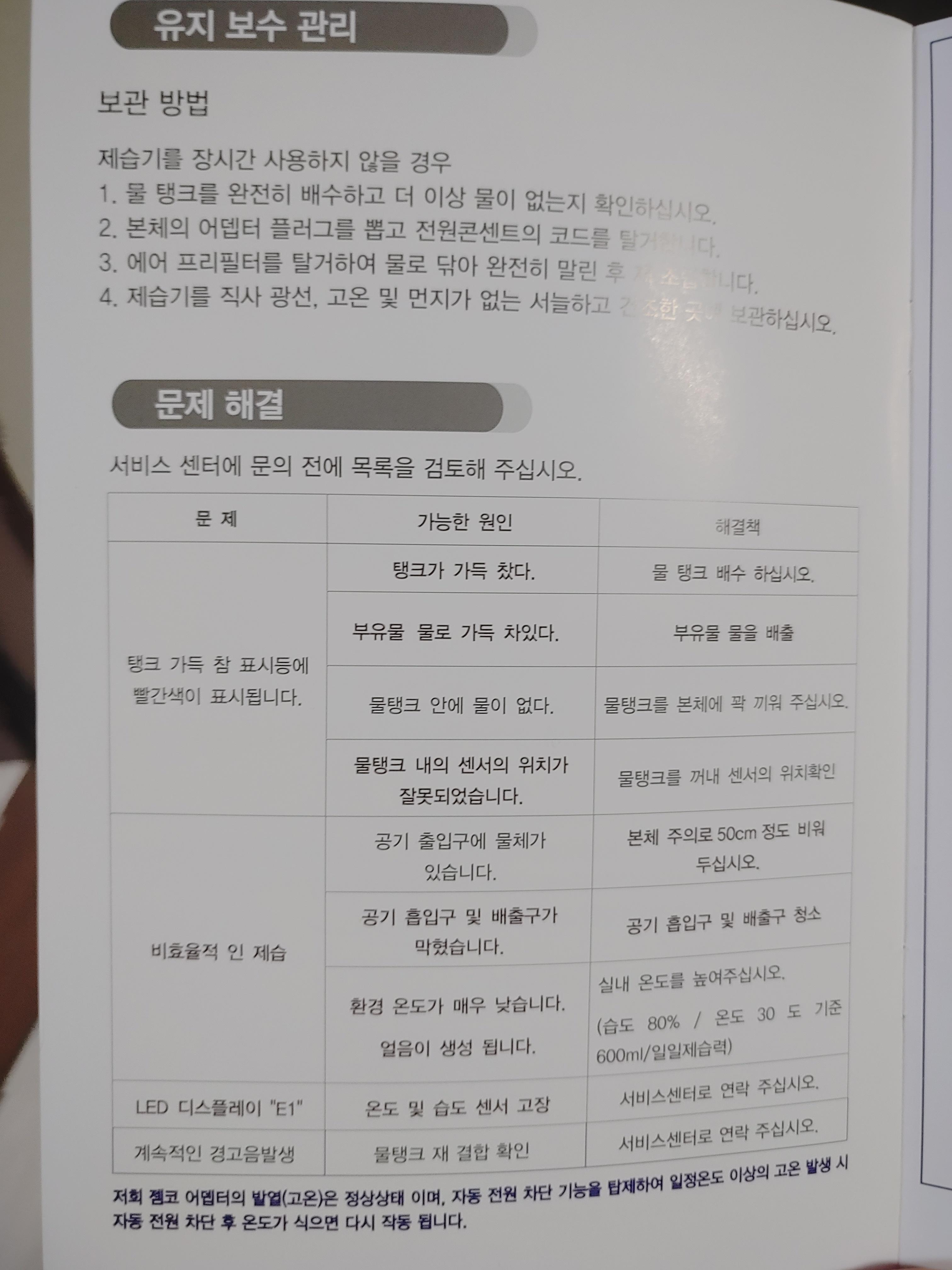 고장 난 몇 일간 방의 습기가 올라오는 것을 보니 이 가습기의 성능은 확실하니까 말이다.