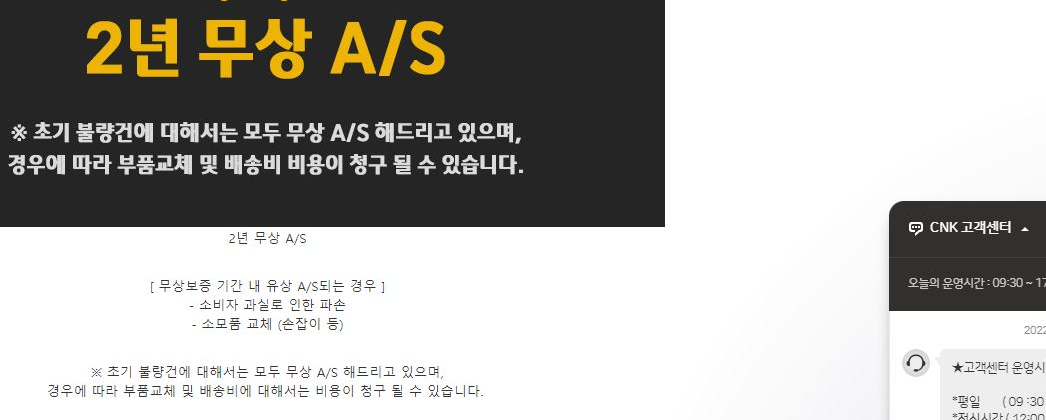 2년 무상 a/s 적용 사례를 따로 알아봐야 할 정도였던 상담원의 응대를 봤을 때
