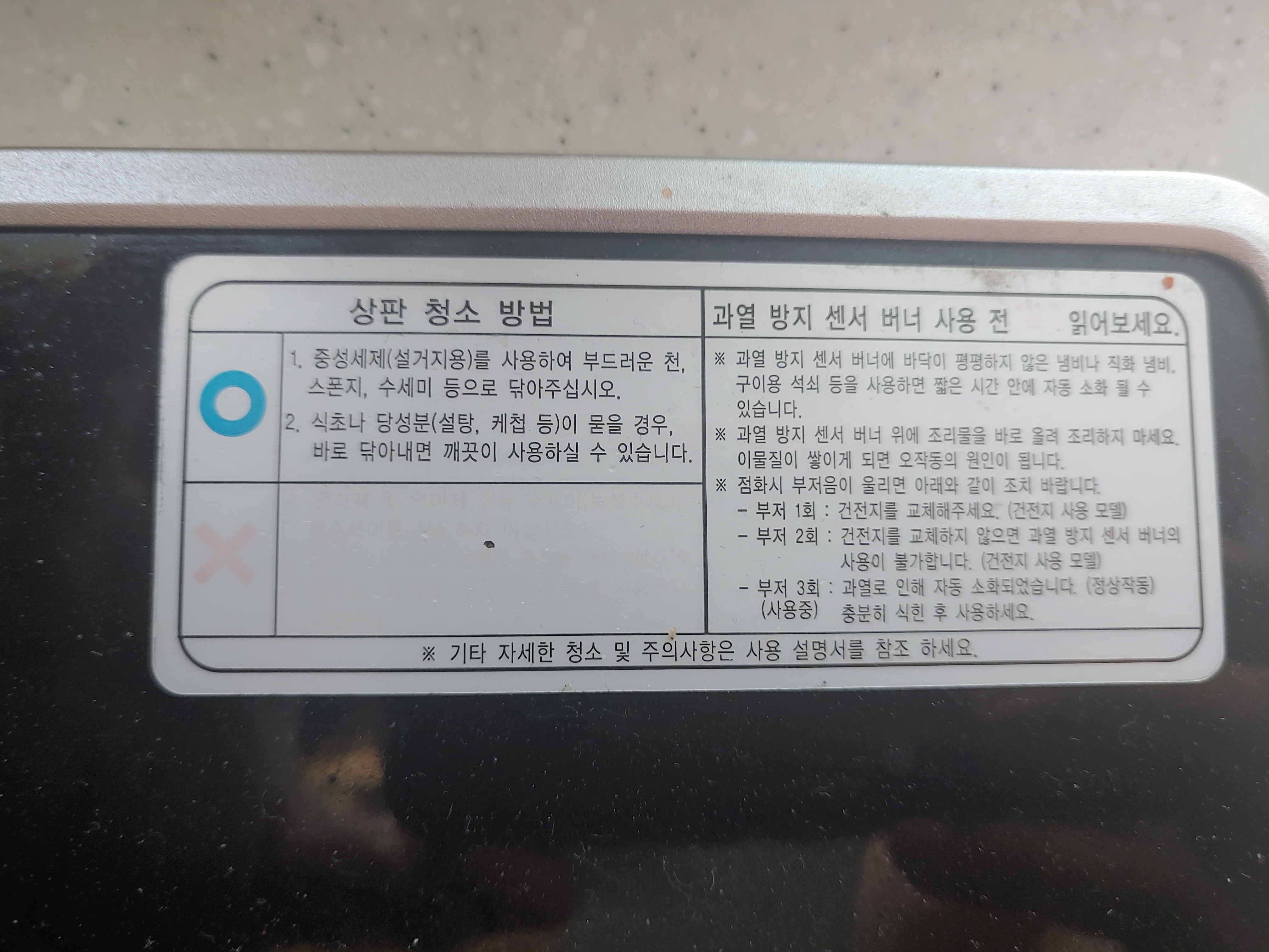 결론은 가스레인지 오른쪽 위 구석의 아주 작은 경고문에서 설명하고 있었습니다.