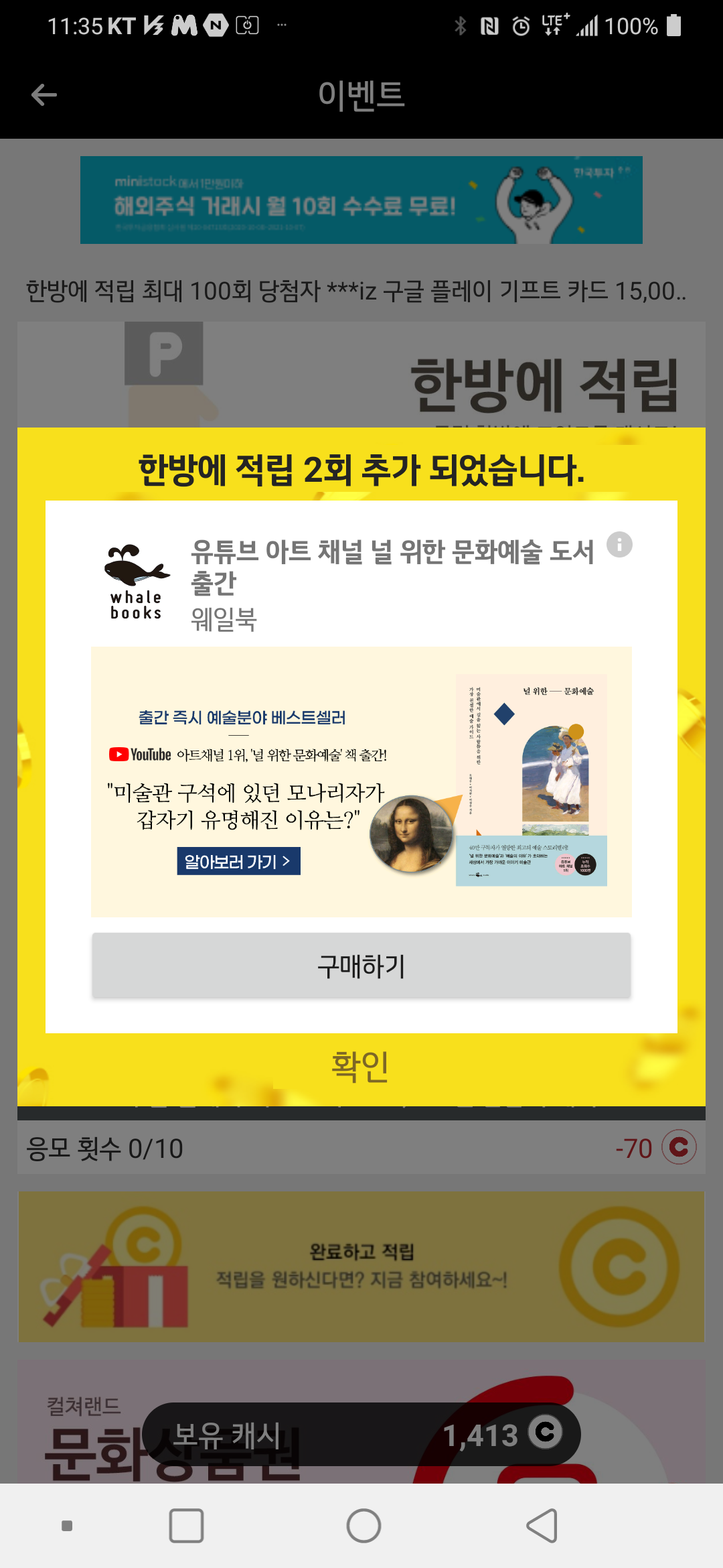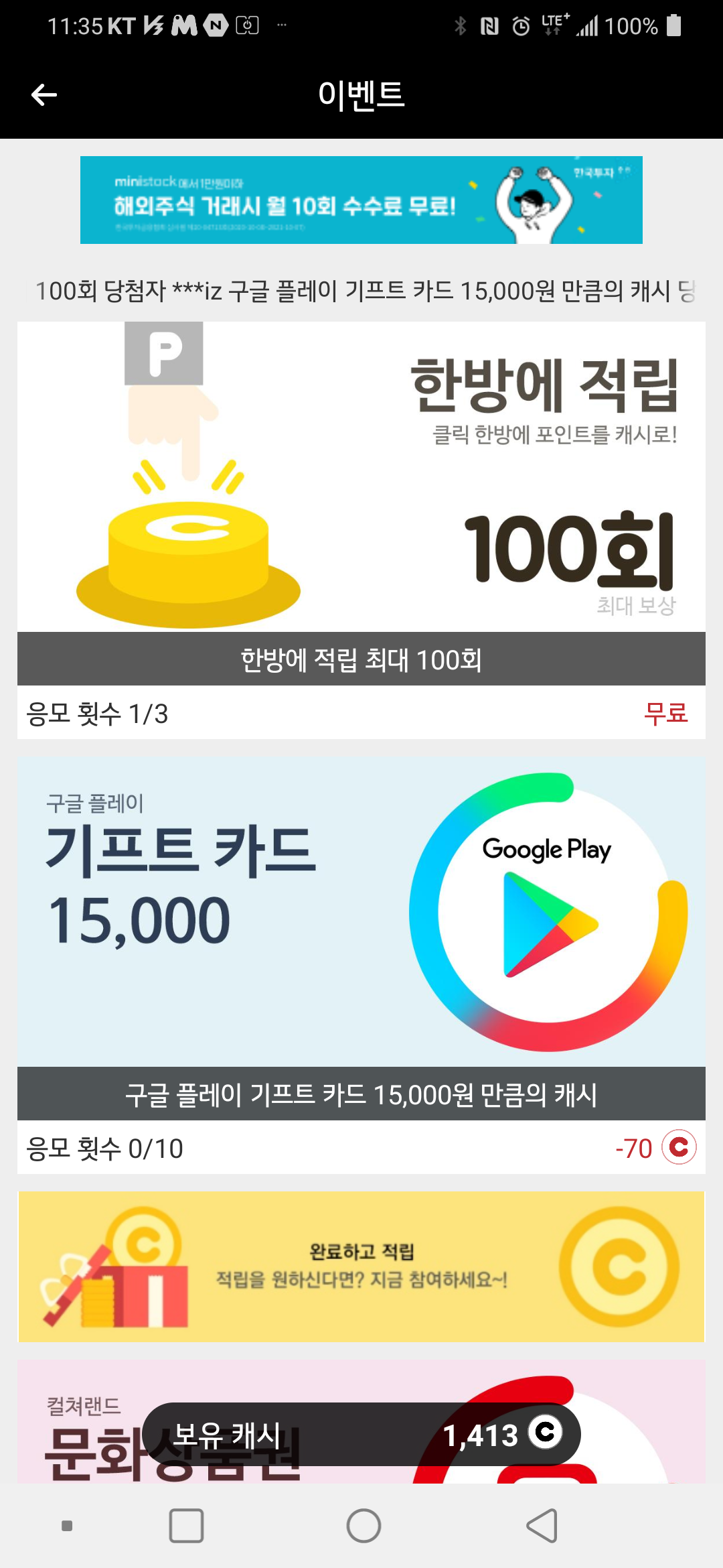 캐시 적립시 광고가 나오긴하지만,