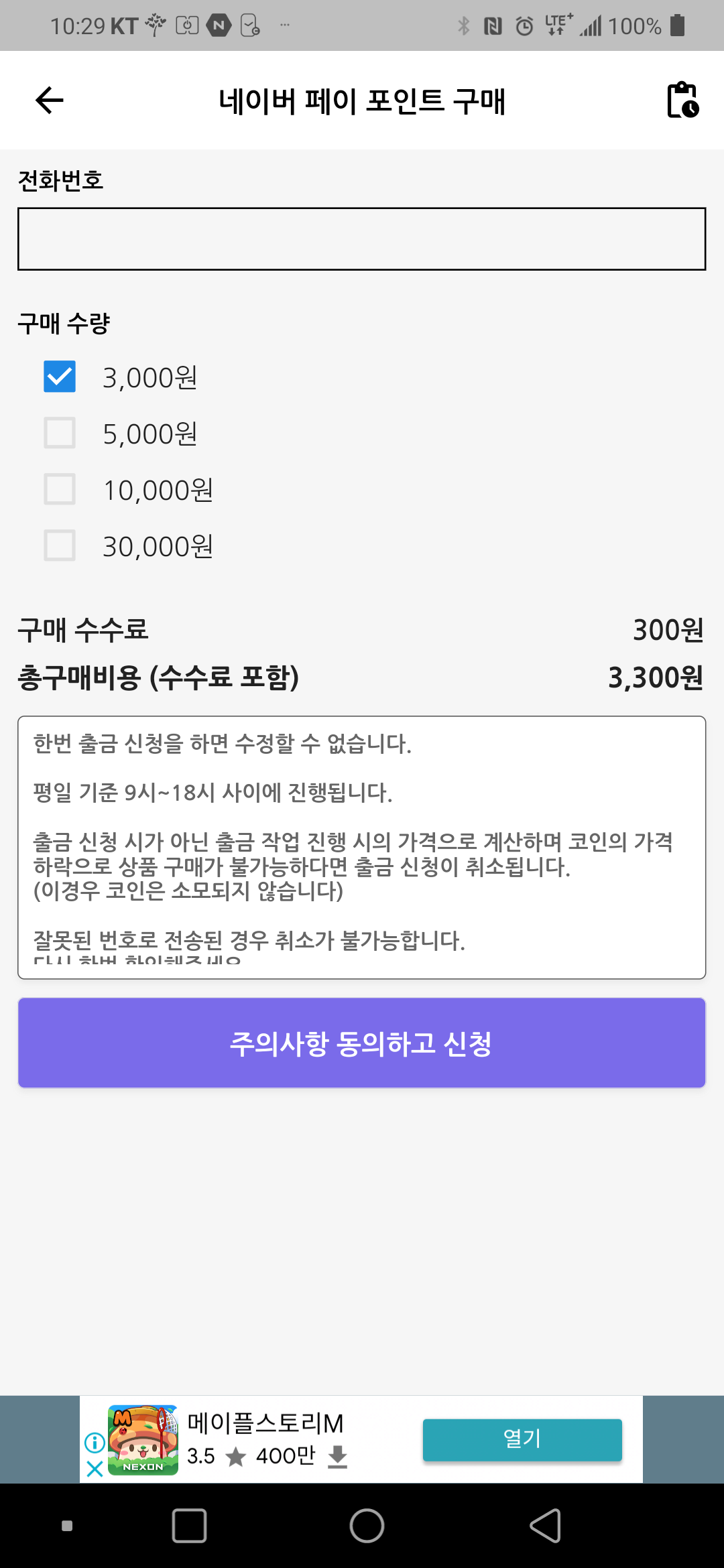 1시간당 100포인트가 쌓이게 되는데, 10시간 이내에 한번씩만 체크하면 되고