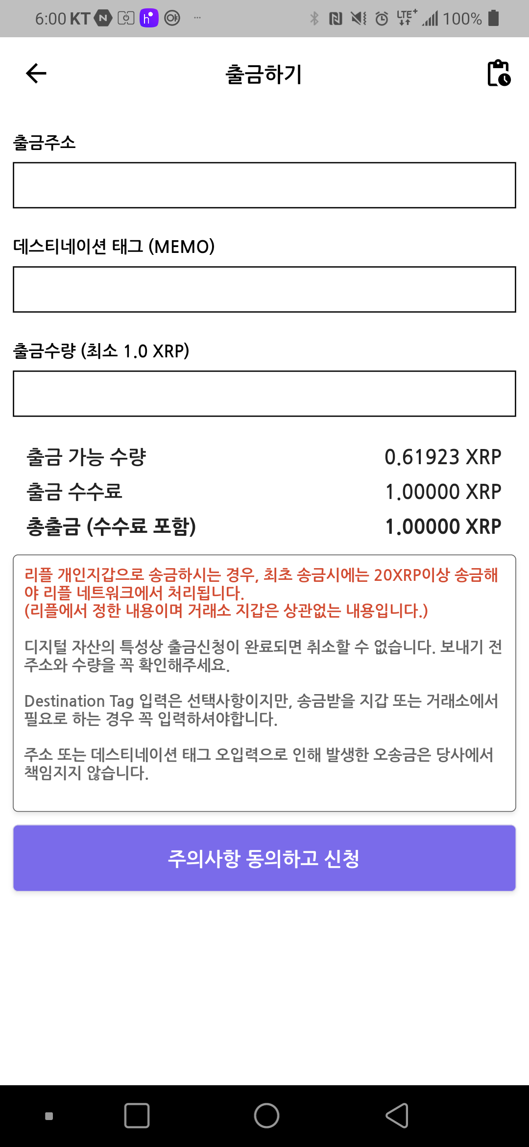 출금하기를 누르면 이와 같은 화면을 볼 수 있습니다.