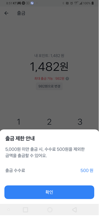 5000원 이하 출금시 500원의 수수료가 발생한다는 점만 유의하면됩니다.