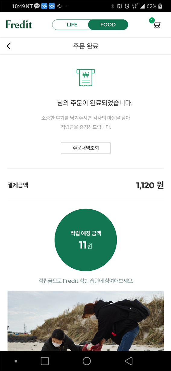 (오른쪽 사진) 1,120원만 결재된 찬란한 모습을 보십쇼. 아주 감격스럽습니다.
