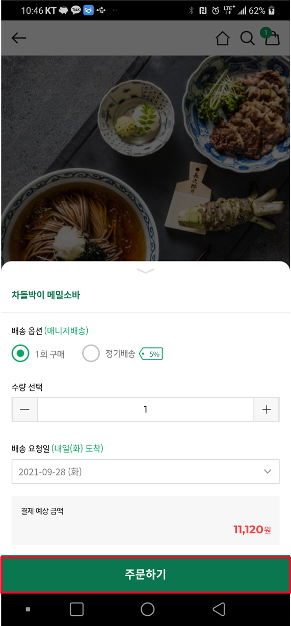 적당한 물건을 누른 뒤 주문하기를 누룹니다.
