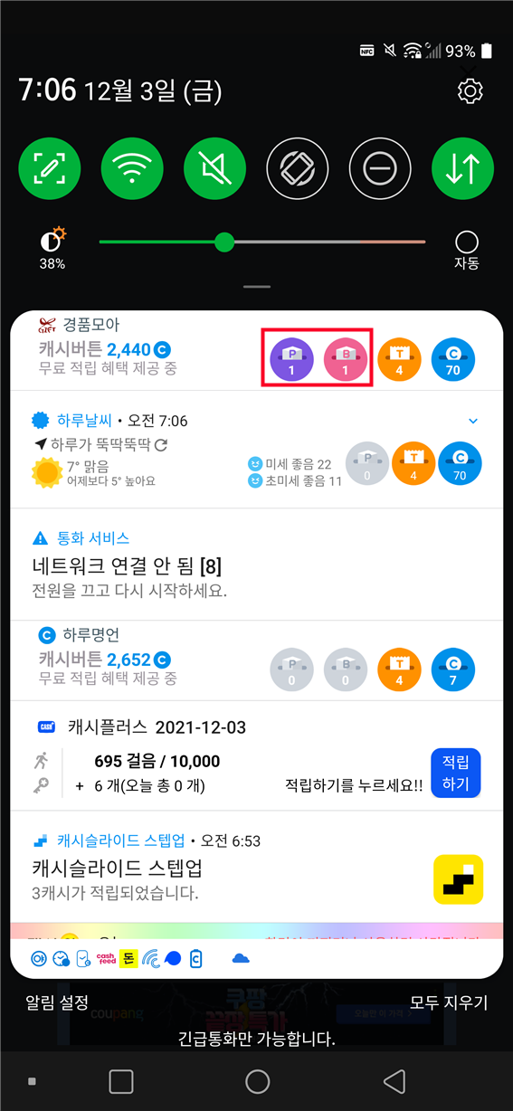 (가운데 사진) 핸드폰 상태창에서 2가지 캐시박스를 더 얻을 수 있는데