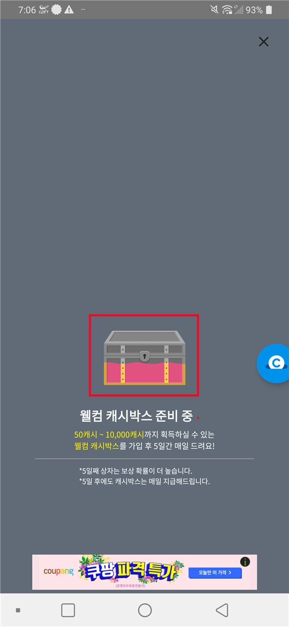 앱을 처음 시작하시면 출첵이벤트가 활성화됩니다.