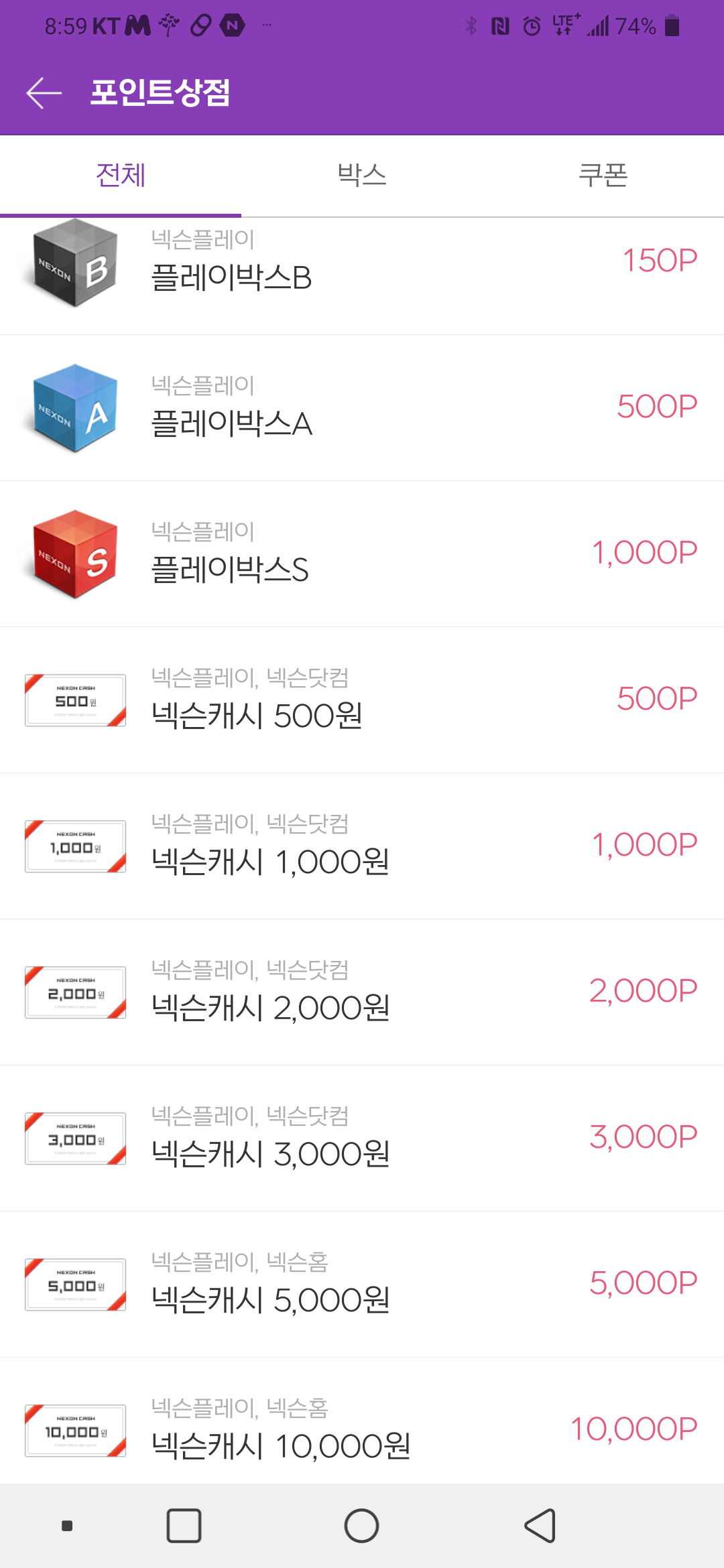 포인트를 얻으면 위와 같은 박스나 쿠폰을 살 수 있는데,