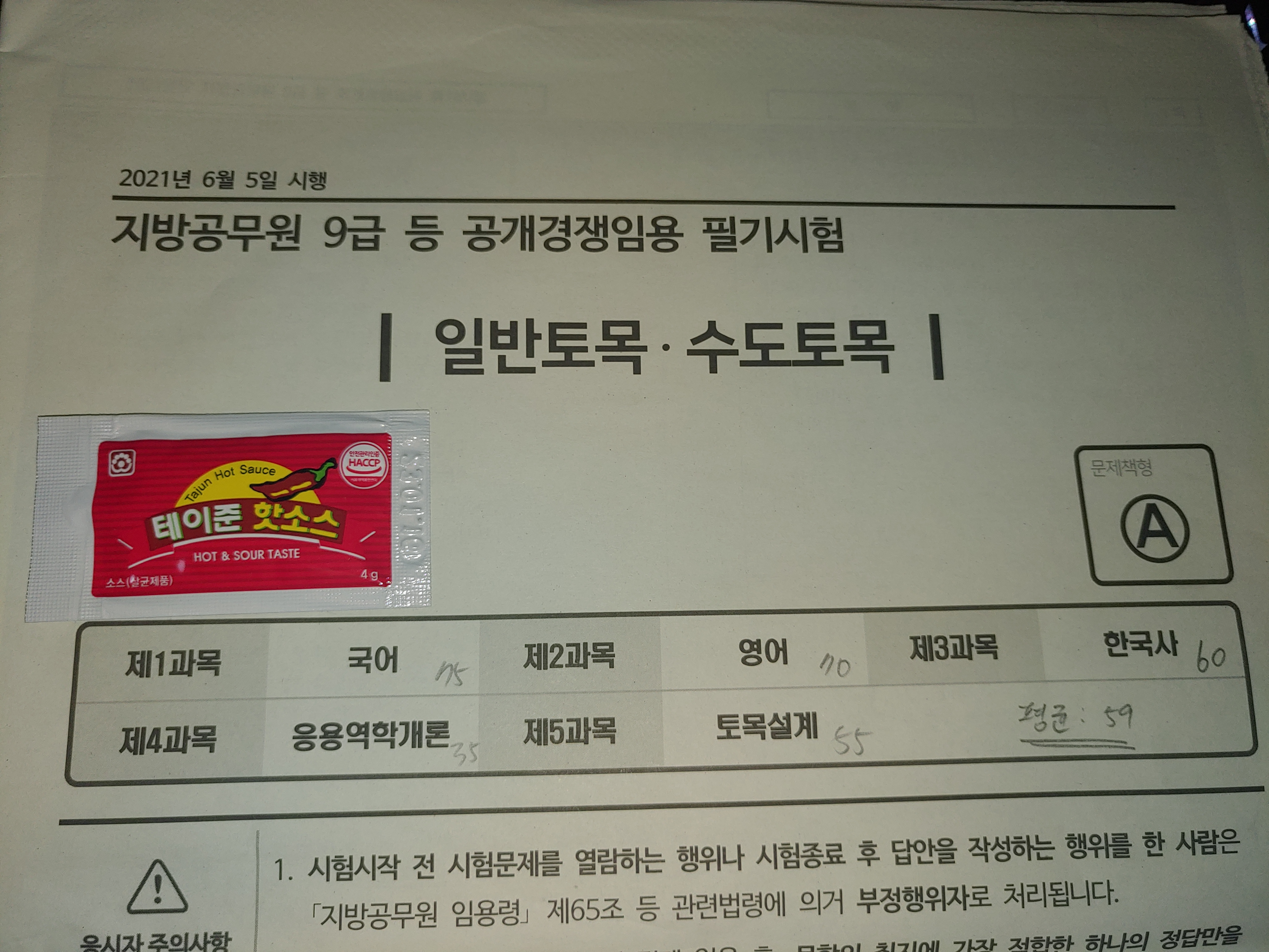노리고 있던 지방직 시험에서는 무조건 붙을거라는 계산이 나왔었는데,