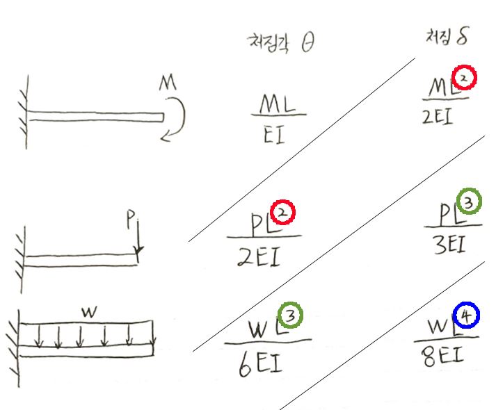 처짐도 처짐각도 모두 마찬가지이니 암기하기 쉽죠.