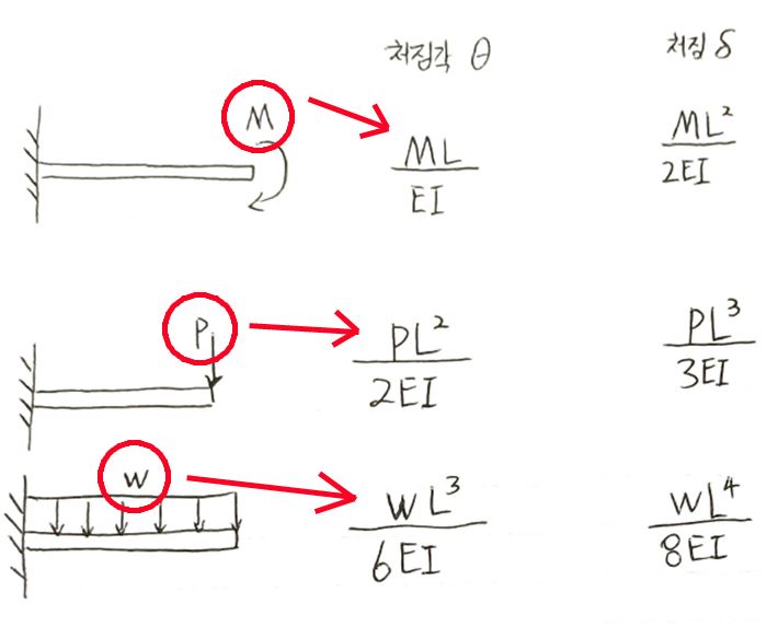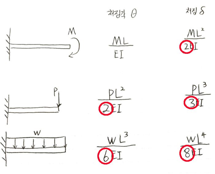 캔틸레버 보의 처짐과 처짐각을 쉽게 암기할 수 있도록 제가 도와드리겠습니다.