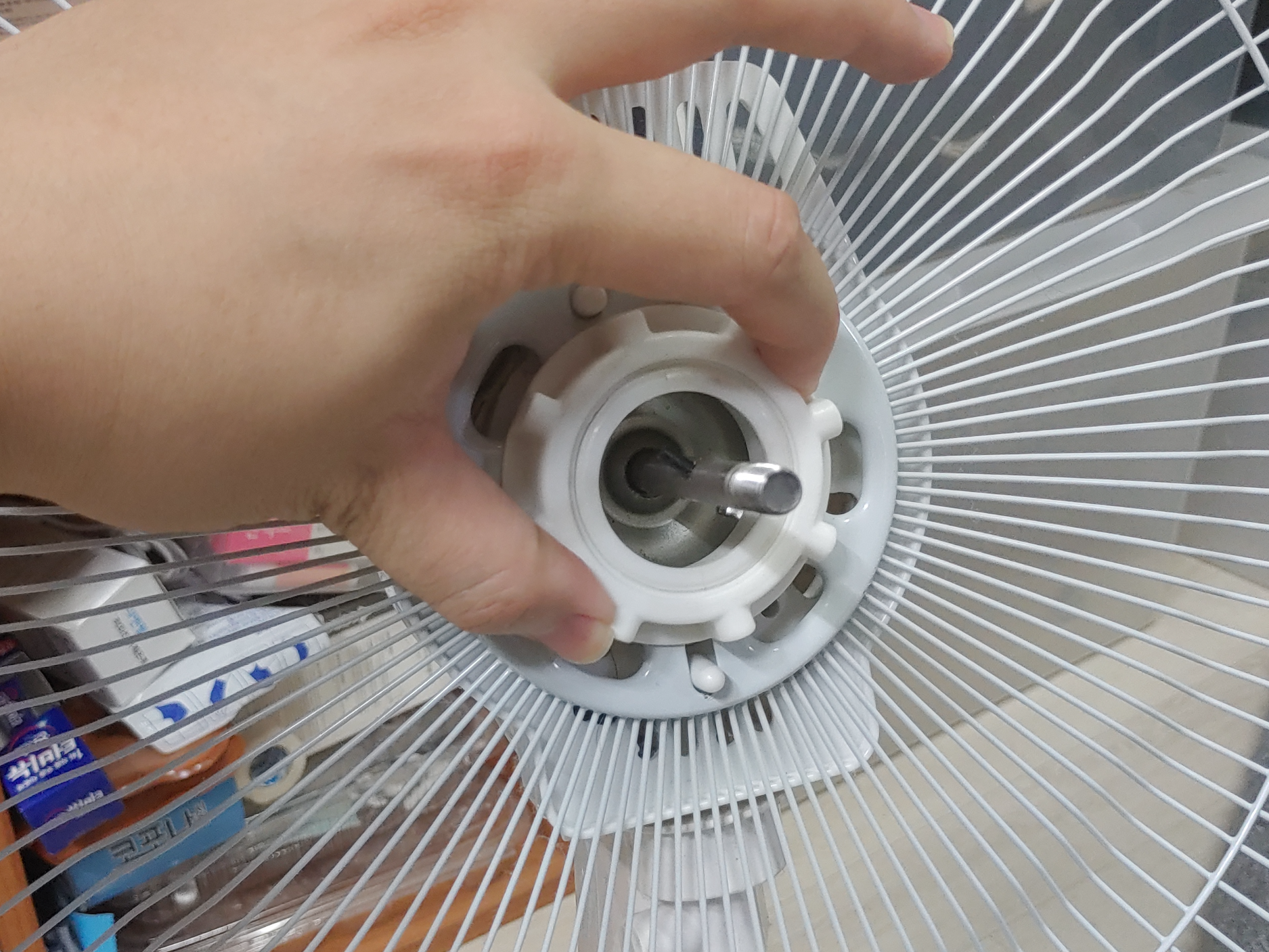 각 고정 장치들의 특징을 파악하면서 선풍기 머리를 분해해줍니다.