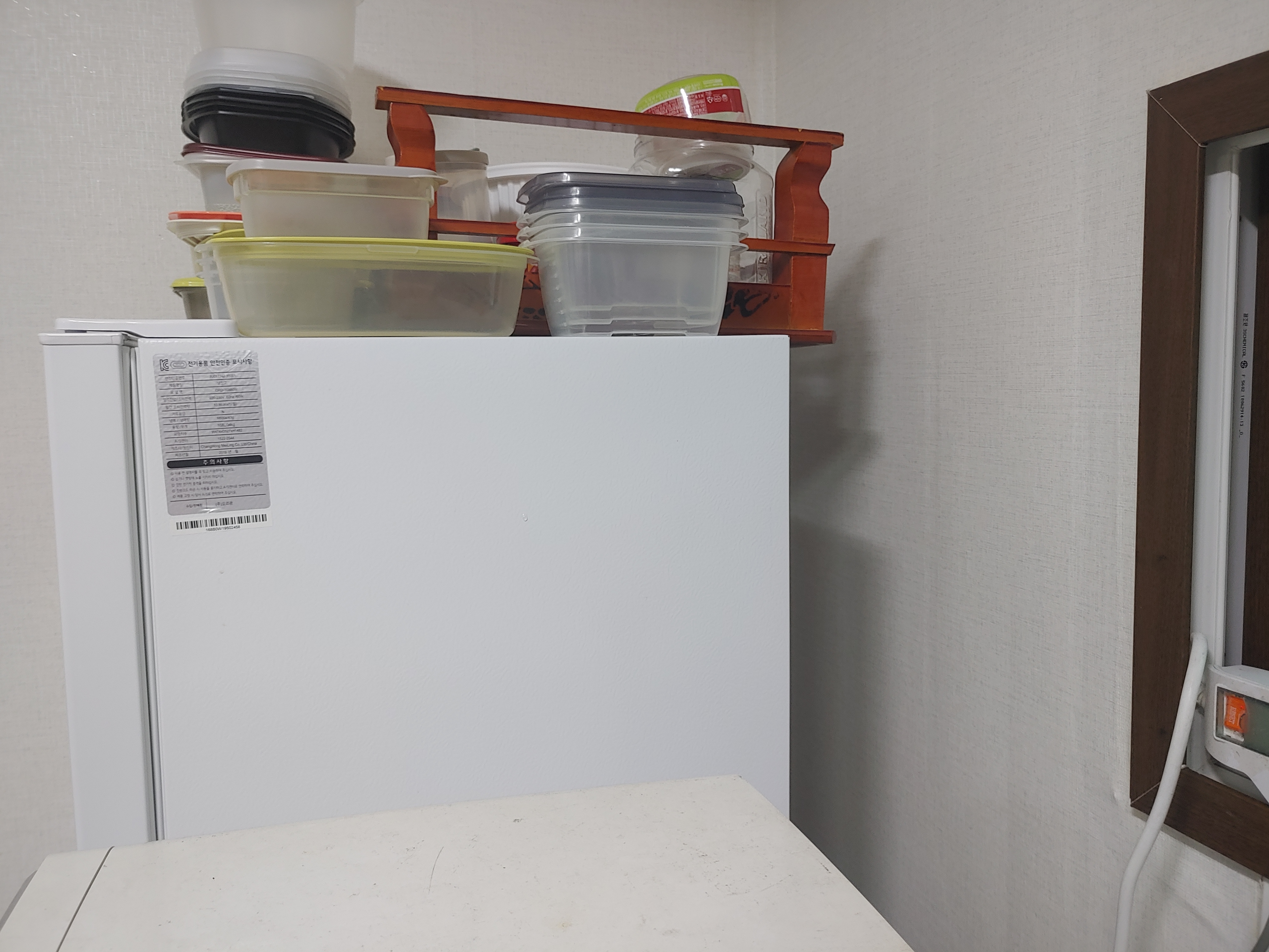 제가 쓰고 있는 냉장고는 뒤쪽의 공간을 필요로 하기에 할 수 있는 조치였습니다.