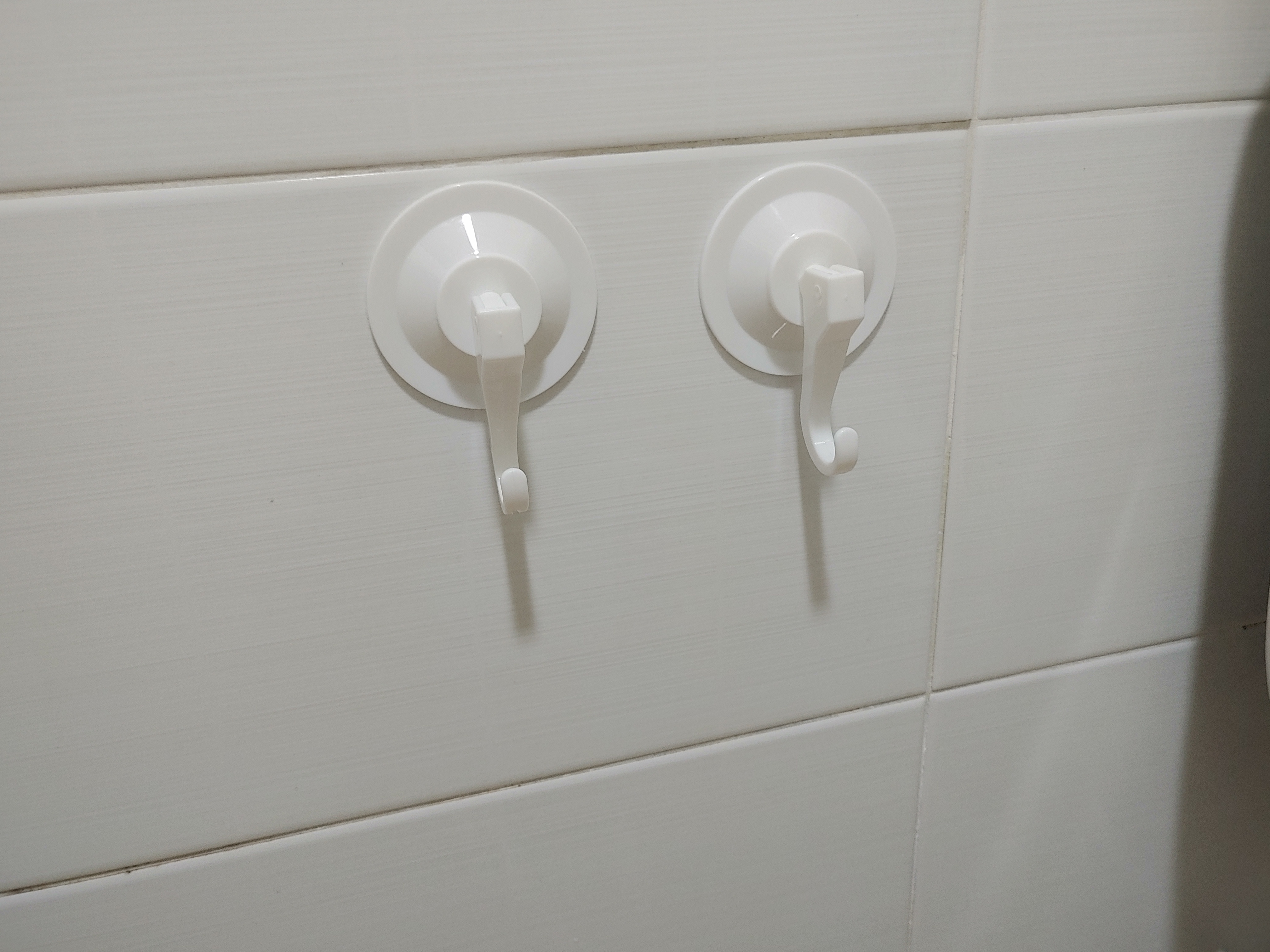 강력흡착후크입니다. 흡착방식이기 때문에 화장실 타일과 같이 매끈한 면에는